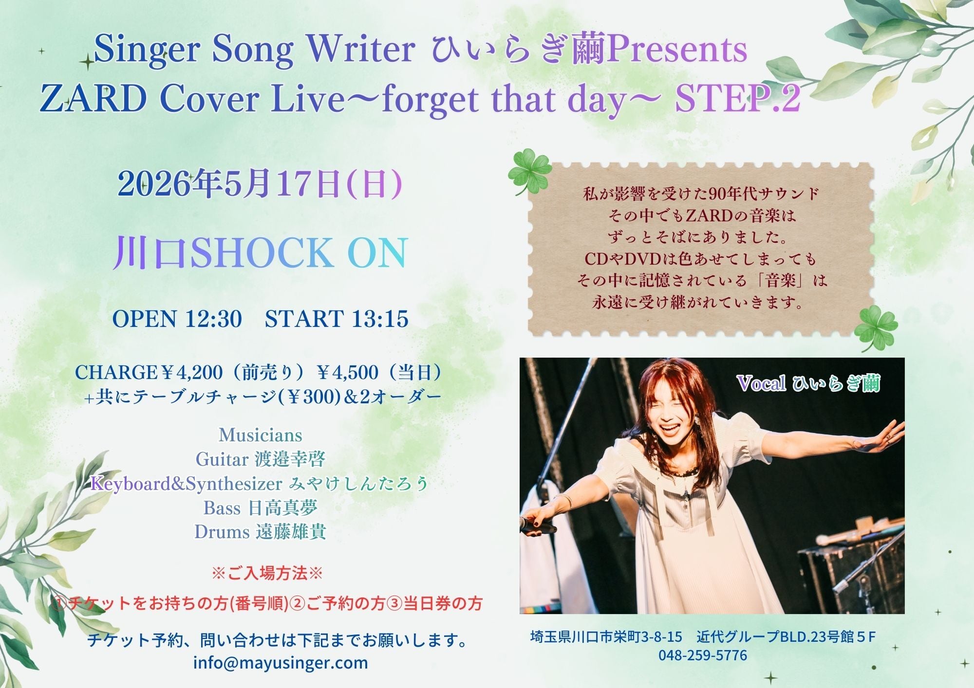 Singer Song Writer ひいらぎ繭Presents ZARD Cover Live~forget that day~ STEP.2